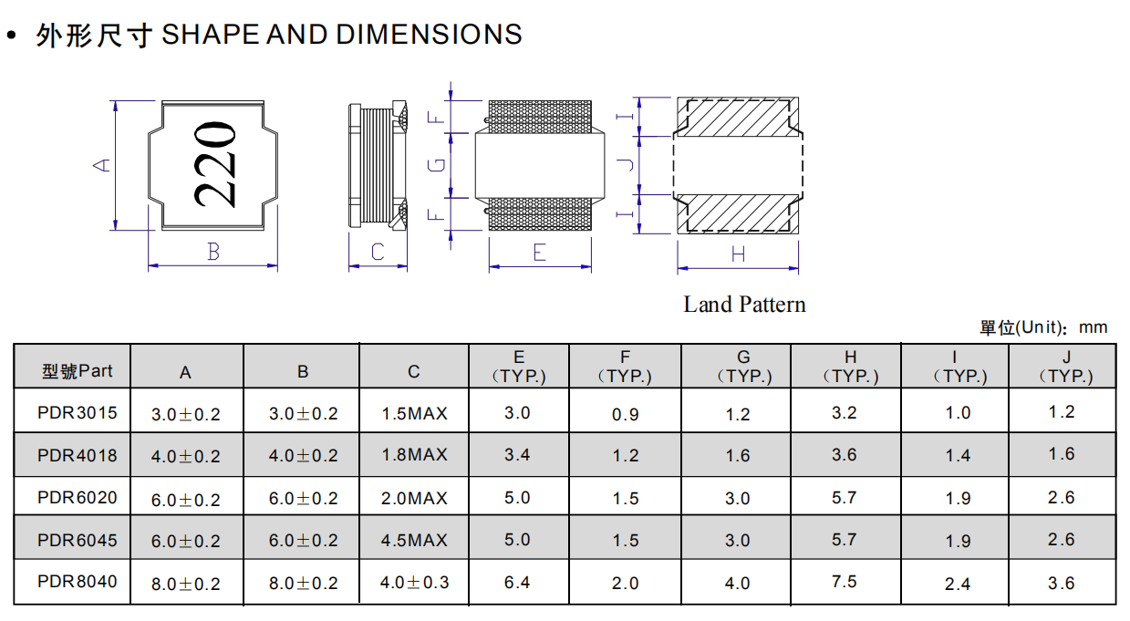 如下图所示:PDR系列贴片屏蔽电感和GNR系列贴片屏蔽电感的外形尺寸几乎没有差别,谷景电子的GNR系列贴片屏蔽电感不仅囊括了风华高科PDR系列的5种型号,还有12种型号可以供客户选择,如果这些还不能满足客户的要求,谷景还可以提供定制服务。