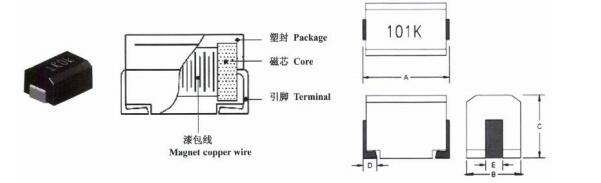 一、塑封型绕线电感封装特性: