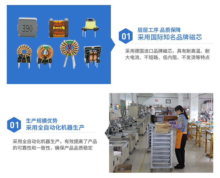 绕线固封在具有良好抗热性能的塑胶壳内,具有高尺寸精度、良好的防震抗压压能力;