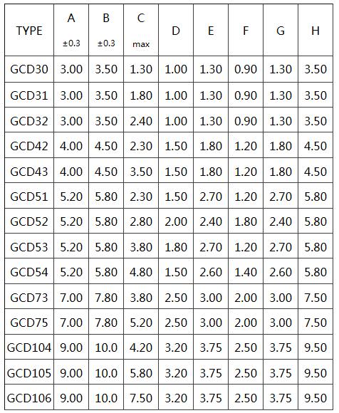 贴片电感GCD封装尺寸: